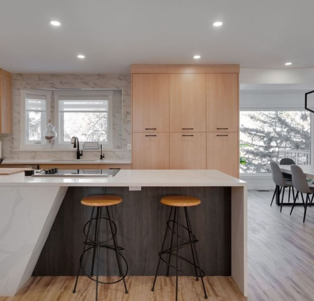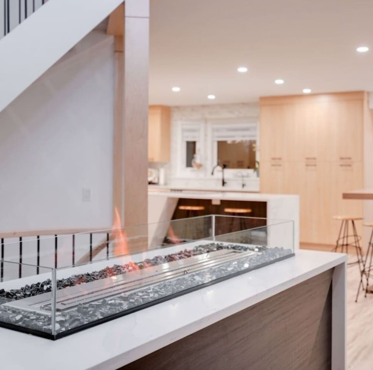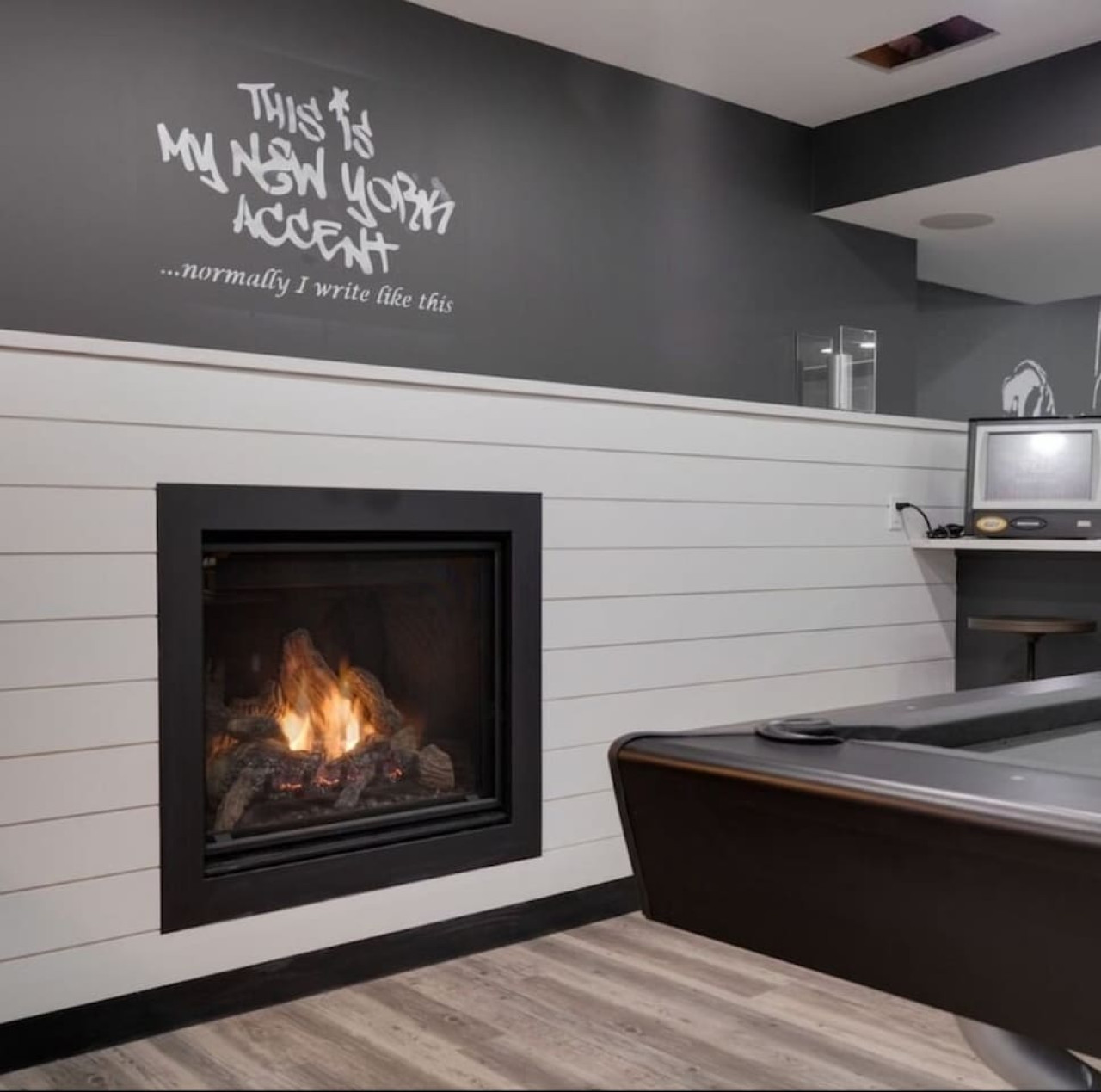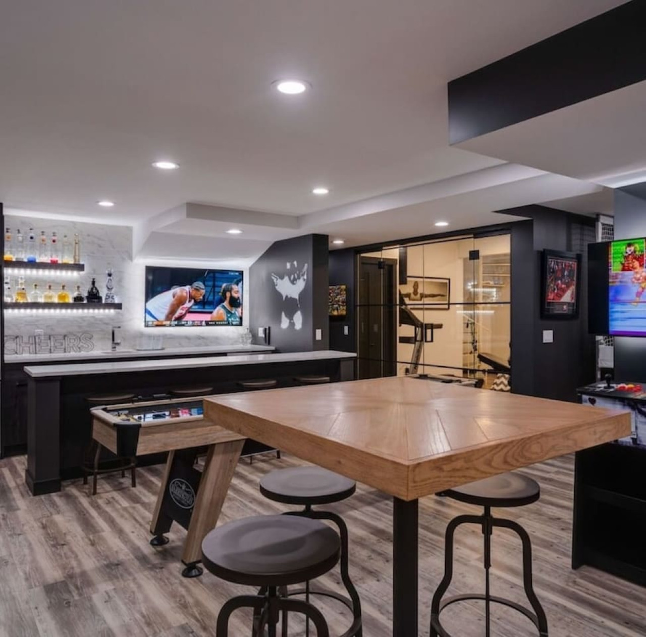 / nightThe Reimagine Calgary South is the perfect destination for your family or mid-large size group. The 5500sf home backs onto the Eagle Quest public golf course and has been lovingly renovated from the studs over the past 4 years. The house is perfect for entertaining, with tons of seating dual bars in the basement, colour changing lighting and 9 tvs. Great location and easy access to all that Calgary has to offer! - 5500 sf developed - 8 Bedroom (6 natural bedrooms, plus lower gym and office where we have added beds) - 4 Full Bathrooms + 1 Half Bathroom - Kitchen: Chef’s Kitchen with high-end appliances, walk-in pantry and large central island. - Dual Gas Fireplaces - Upper and Lower Private Decks - 5-Piece Master Ensuite featuring massive steam shower with 48”x48” rain head and 72” jetted soaker tub. - 1600sf Basement w/ Dual Bars, Tons of Seating and Plenty of Games for you to enjoy. Also offers Phillips Hues colour changing lighting to set the mood however you want it. What's Fun?? - Slide from Main Floor To Basement (lands in 8th bedroom, so someone might not love it if you are using all the rooms). - Shuffleboard - 9 TVs, Including 4 in the basement entertaining area. - Pop-A-Shot - Pool Table - Secret Door - Indoor-Trampoline (KIDS ONLY) - 8’ Indoor Climbing Wall (KIDS ONLY) NEGATIVES - Garage Not Included In Rental (We use it for storage). There are three stalls on the driveway. Beyond that there is very limited street parking. (PLEASE BE CONSIDERATE OF THE NEIGHBOURS AS WE HAVE HAD ISSUES WITH GUESTS BLOCKING NEIGHBOURS DRIVEWAYS). - Yard is not fenced on two sides. - No shedding dogs please as our kids have allergies. And there is a super cool slide from the kitchen to the basement.